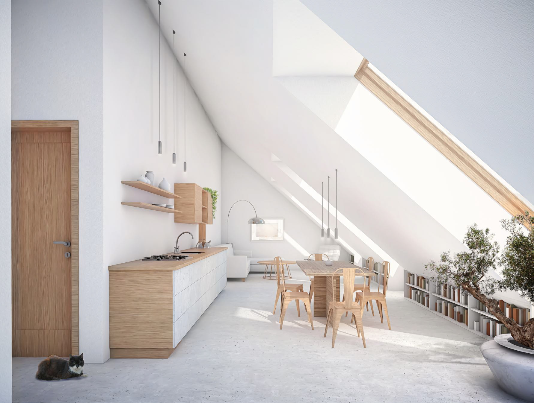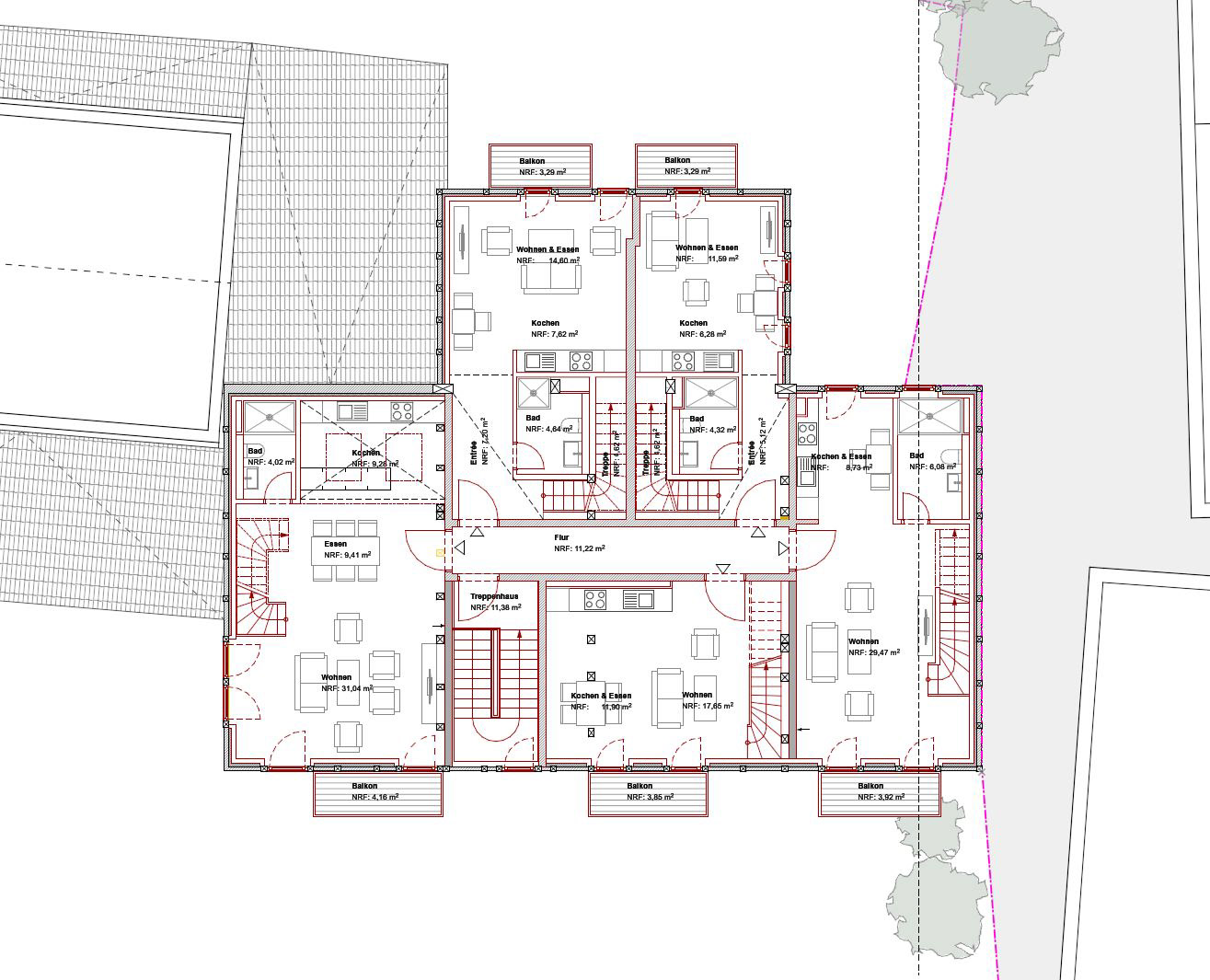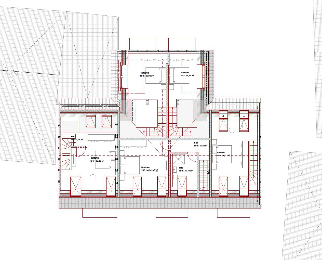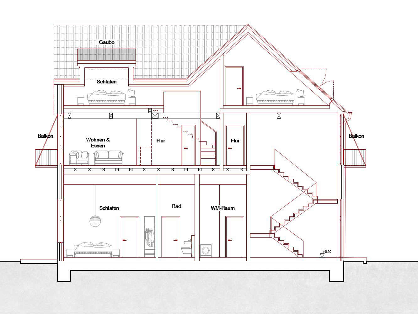 The proposed architectural design focuses on the repurposing of a listed barn building within the historical city center ensemble near Kassel. The planned transformation involves converting the lofty roof space into three levels to accommodate a total of seven apartments. The first and second upper floors are envisioned as maisonette apartments, with bedrooms situated in the attic spaces. The structure and facade division of the original timber framework will be preserved in the facade design to meet the requirements of heritage conservation. Inside, the wooden beam structures will be retained and accentuated to evoke the historical ambiance of the building. Striking a balance between historical authenticity and contemporary living needs is at the heart of this endeavor.
