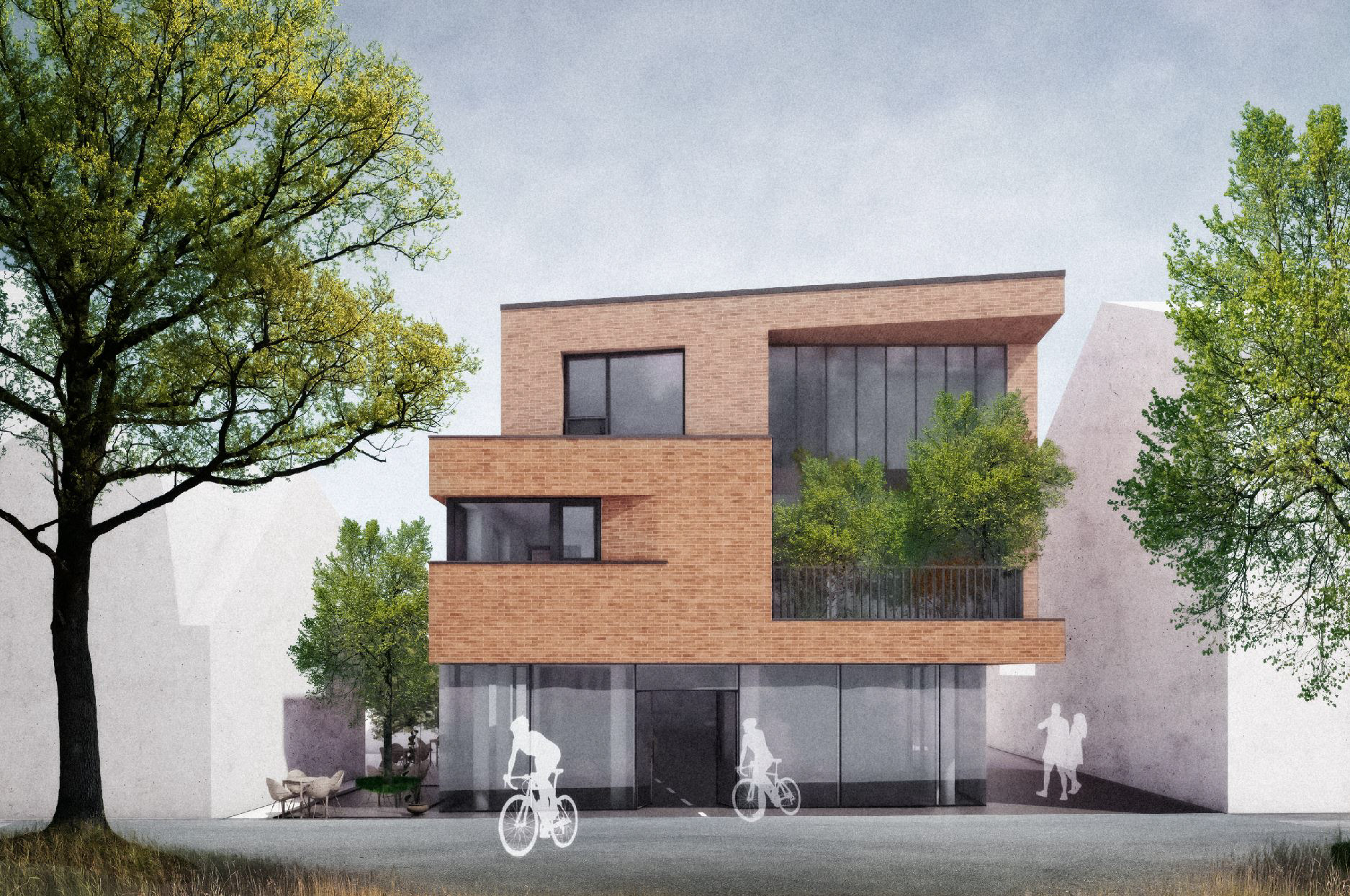 Auf einem schmalen Grundstück in Neubrandenburg entsteht ein neues Wohn- und Geschäftshaus. Der Entwurf von Patalab Architekten fügt sich in den Kontext ein, während er mit einem skulpturalen Backsteinbau einen eigenständigen Akzent setzt. Das Erdgeschoss ist für einen Fahrradladen vorgesehen, in den Obergeschossen sind insgesamt vier Wohnungen geplant. Die Wohnungen bieten offene Grundrisse, Tageslicht aus verschiedenen Richtungen und Verbindungen zum Außenraum über Terrassen.